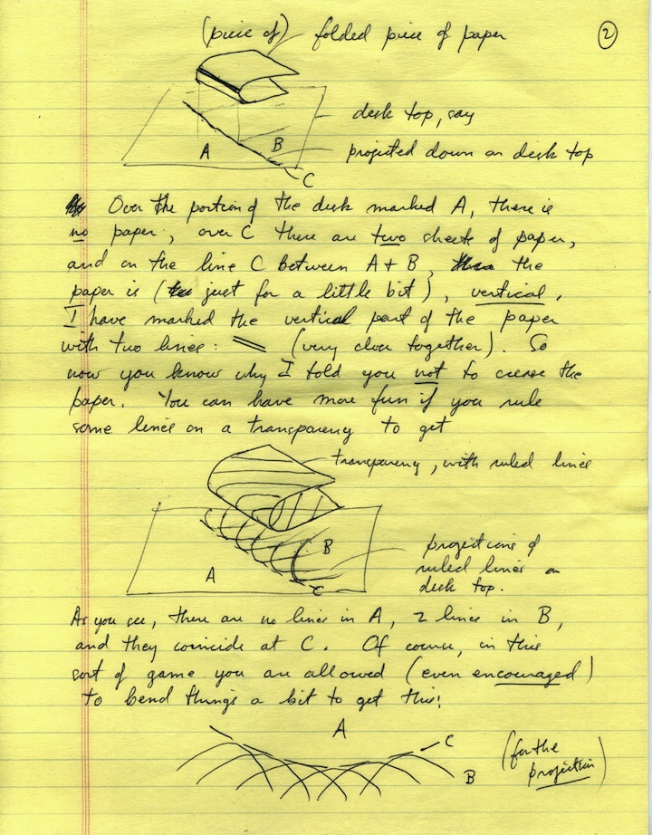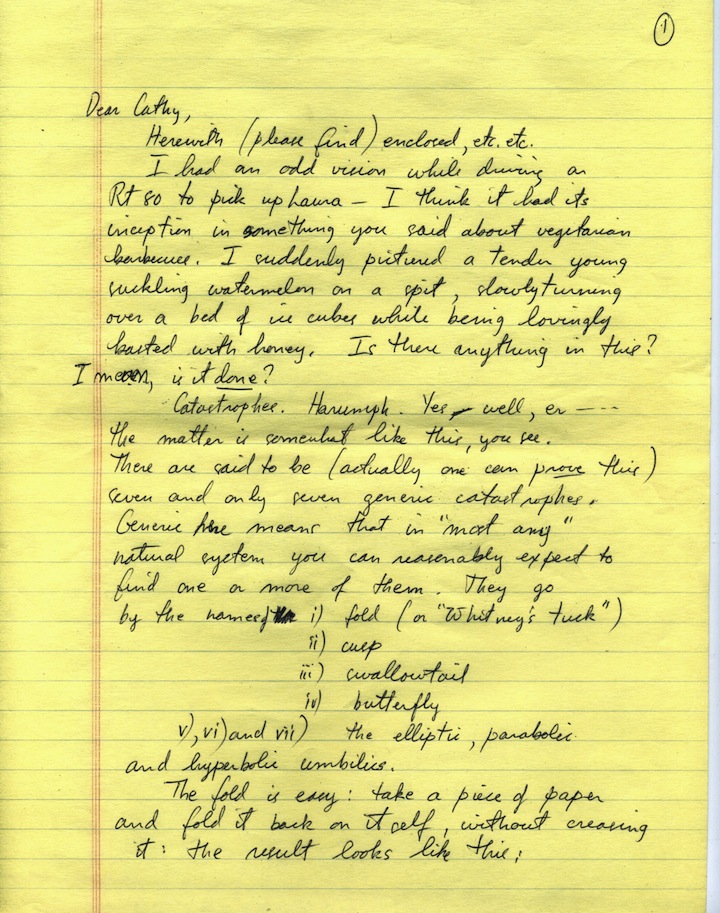 It must have taken him some effort to write this letter. Each page is my father talking to me, the least common denominator; they are a father’s love in thirteen pages. If you didn’t read it, please go back and do so. Try to do as he suggests: Mentally take a sheet of paper, fold it in a specific way, cut it and then rotate it to imagine the edge in two dimensions. It’s more fun than Sudoku, I promise. I read this letter often, trying to understand the content of its pages, and sometimes I think that I do. Yet I will never understand catastrophes as my father does. I will not read this letter as my father’s colleagues would. As I learned long ago in graduate school (thank you, Marty Nystrand), meaning doesn’t reside in any text, available to anyone who picks it up. Any astronomer who picks up my father’s published work (there is, of course, some) will, even if they never met him, know him in a way that I will not. And they will already know the answer to the question I asked his colleagues when I was preparing to write this piece. Why, I asked, did my father devote so much energy to studying hydrodynamics when his subject was astronomy?