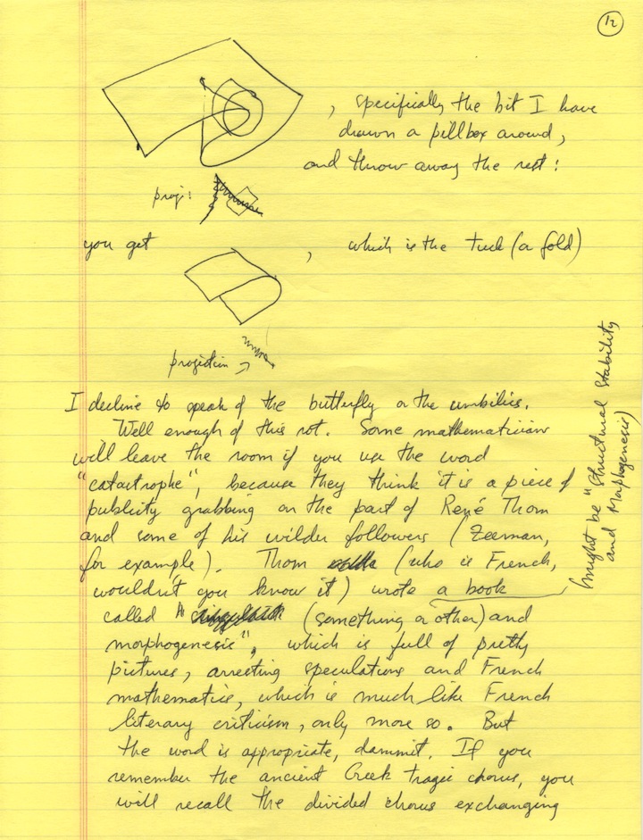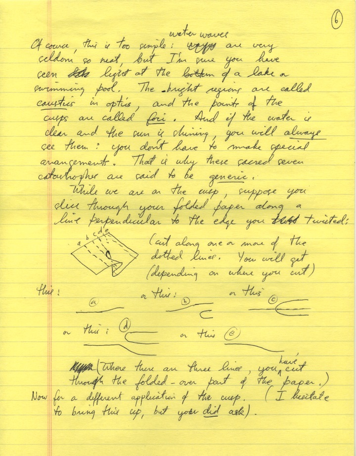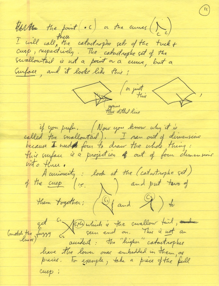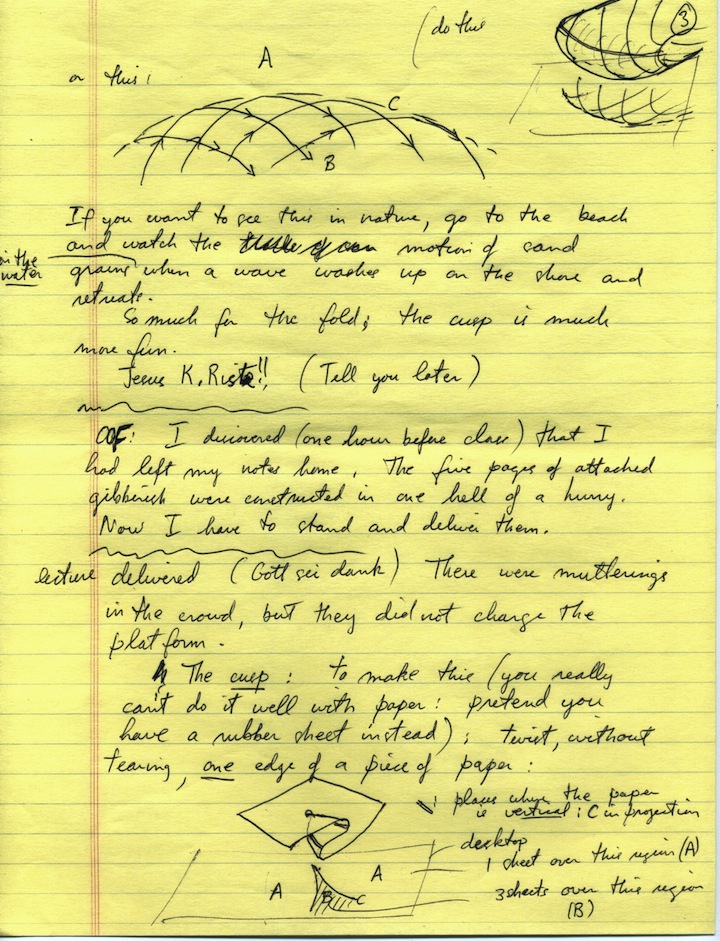 It must have taken him some effort to write this letter. Each page is my father talking to me, the least common denominator; they are a father’s love in thirteen pages. If you didn’t read it, please go back and do so. Try to do as he suggests: Mentally take a sheet of paper, fold it in a specific way, cut it and then rotate it to imagine the edge in two dimensions. It’s more fun than Sudoku, I promise. I read this letter often, trying to understand the content of its pages, and sometimes I think that I do. Yet I will never understand catastrophes as my father does. I will not read this letter as my father’s colleagues would. As I learned long ago in graduate school (thank you, Marty Nystrand), meaning doesn’t reside in any text, available to anyone who picks it up. Any astronomer who picks up my father’s published work (there is, of course, some) will, even if they never met him, know him in a way that I will not. And they will already know the answer to the question I asked his colleagues when I was preparing to write this piece. Why, I asked, did my father devote so much energy to studying hydrodynamics when his subject was astronomy?